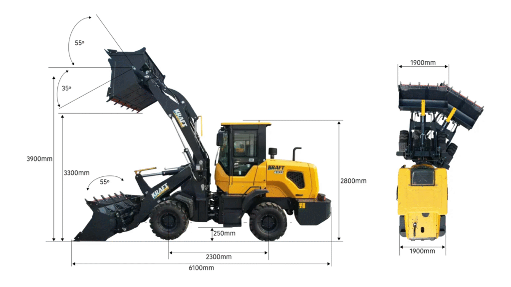 A K922 é ideal para quem precisa de uma pá carregadeira compacta, versátil e econômica. Com 1.600 kg de capacidade de carga, motor YUNNEI de 74 HP, tração 4×4 e sistema de engate rápido direto da cabine, é perfeita para obras leves, centros logísticos e áreas agrícolas.